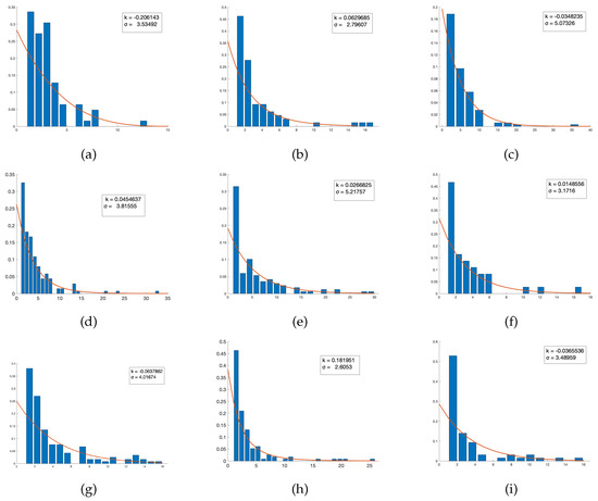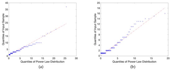 - Clauset, A.; Shalizi, C.R.; Newman, M.E. Power-law distributions in empirical data. SIAM Rev. 2009, 51, 661–703. [Google Scholar] [CrossRef]