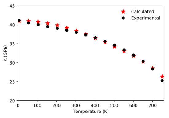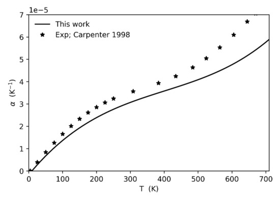 Figure 7 reports the comparison between the calculated entropy values (solid line) against the experimental ones from [5,27]. The agreement is very good in the whole range of temperatures (0–700 K).