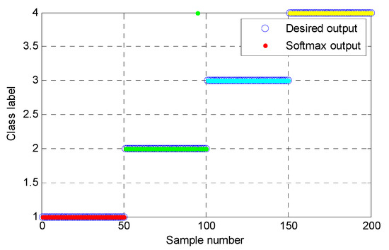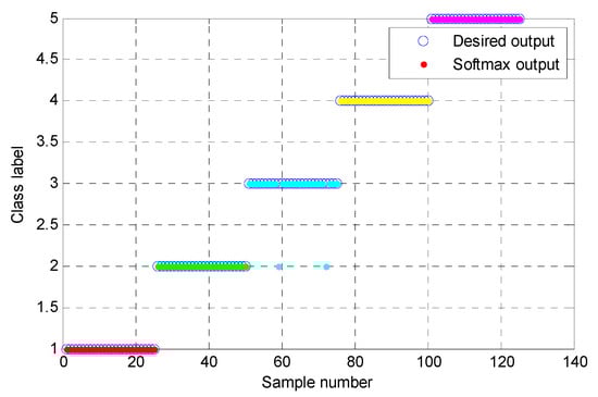 Figure 23, after morphological convolution filtering, the degree of distinction of four gear health conditions is greater than that without filtering processing. This verifies the importance of morphological convolution filtering for signal preprocessing. Finally, the extracted GCMLZC was input into the softmax model for fault pattern identification.
