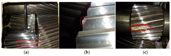 Figure 20 shows photographs of three gearbox faults. In the process of method validation, we obtained 100 data samples of each health condition. For each health condition, 50 samples were randomly selected as the training data, and the remainder was regarded as testing data. A total of 200 training and 200 testing samples were obtained, and each sample had 16,384 points. Apparently, it is a four-classification issue to be solved in essence.
