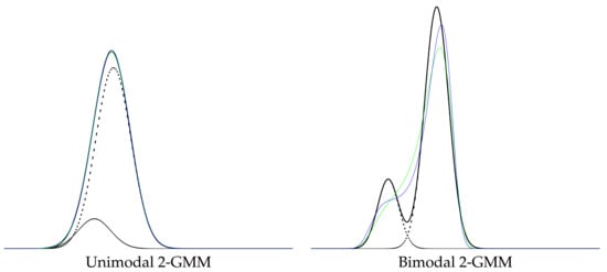 - Aprausheva, N.; Sorokin, S. Exact equation of the boundary of unimodal and bimodal domains of a two-component Gaussian mixture. Pattern Recognit. Image Anal. 2013, 23, 341–347. [Google Scholar] [CrossRef]