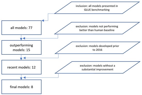 The scope of this targeted review about neural language models is papers describing the concepts, internals, and descriptions of these models and is evaluated using the GLUE benchmark [1]. There are 77 models listed on the benchmark’s leaderboard. We discarded the models that do not outperform human baselines (ranked 16/77). Of the 15 remaining models, we review the models developed in the last five years, i.e., since 2016, starting with the attention-based concepts [6] and the transformer architecture in 2017 [7] and ending with DeBERTa in 2021 [8]. The reason for limiting the targeted review to the last 5 years is to show the quick progress achieved recently. The concepts and milestones of the latest research in natural language models are described in this paper.