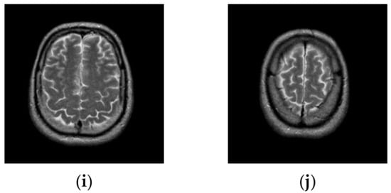 MR-T2 brain slices: (a) slice #022, (b) slice #032, (c) slice #042, (d) slice #052, (e) slice #062, (f) slice #072, (g) slice #082, (h) slice #092, (i) slice #102, (j) slice #112.