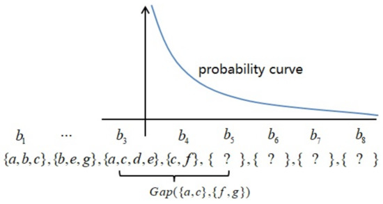 Let be a set of n customers and be a set of m items or products in the market. The transaction sequence of customer c is denoted as , and , where , , denotes a transaction or basket. The terms transaction, basket and itemset will be used interchangeably, due to the fact that we are referring to an unordered set of items (or products). The size of sequence is denoted as , and . denotes the next basket that will be purchased by customer c at the next time. We use indexes set of baskets in transaction sequence rather than formal dates as timestamps to simplify the problem. The interval of two transactions is denoted as and defined as , where . The transaction sequence dataset consists of transaction sequences of n customers.