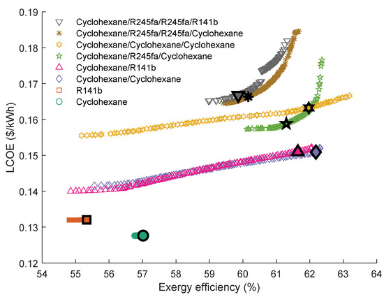 | Fluid pairs | Cy\R245fa\R245fa\Cy | Cy\R245fa\R245fa\R141b | Cy\R245fa\R134a\Cy | Cy\R245fa\Cy\Cy | Unit |