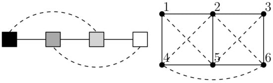 For clarity, Figure 4 depicts the primary model as a graph. For , relationships of strength above 0.4 are shown by a solid line while intermediate relationships between 0.05 and 0.4 are shown with a dash line. For , relationships above 0.87 are shown by a solid line while intermediate relationships between 0.74 and 0.87 are shown with a dash line. The primary model corresponds well with what we would anticipate having simultaneously recovered the geometry of the sampling grid and the relationships that give the gray scale. However, there is one intermediate relationship between node 4 and node 6 that is unexpected which we attribute to the sample size being a little too small for the data set used on this occasion.