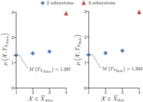 Now, the notation introduced in Section 1.2 can be extended. For a subsystem of S, an element of is denoted by and denotes the marginal probability distribution for the subsystem X obtained from the distribution . That is we have
