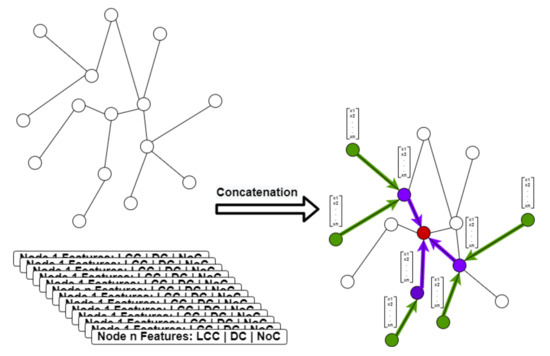 - Grover, A.; Leskovec, J. Node2vec: Scalable Feature Learning for Networks. In Proceedings of the 22nd ACM SIGKDD International Conference on Knowledge Discovery and Data Mining, San Francisco, CA, USA, 13–17 August 2016; pp. 855–864. [Google Scholar] [CrossRef] [Green Version]