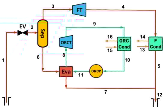 - Liu, X.; Yang, X.; Yu, M.; Zhang, W.; Wang, Y.; Cui, P.; Ma, Y.; Gao, J. Energy, exergy, economic and environmental (4E) analysis of an integrated process combining CO2 capture and storage, an organic Rankine cycle and an absorption refrigeration cycle. Energy Convers. Manag. 2020, 210, 112738. [Google Scholar] [CrossRef]