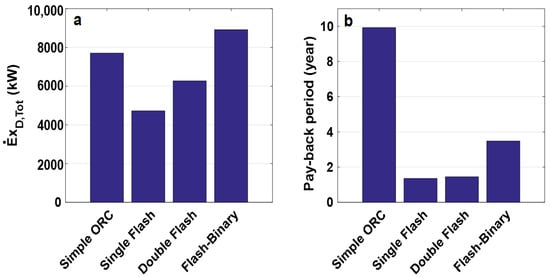 - Abdolalipouradl, M.; Mohammadkhani, F.; Khalilarya, S. A comparative analysis of novel combined flash-binary cycles for Sabalan geothermal wells: Thermodynamic and exergoeconomic viewpoints. Energy 2020, 209, 118235. [Google Scholar] [CrossRef]