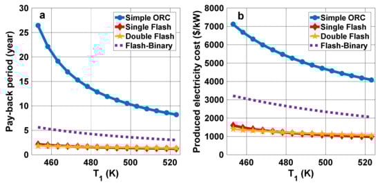 - Shokati, N.; Ranjbar, F.; Yari, M. Comparative and parametric study of double flash and single flash/ORC combined cycles based on exergoeconomic criteria. Appl. Therm. Eng. 2015, 91, 479–495. [Google Scholar] [CrossRef]