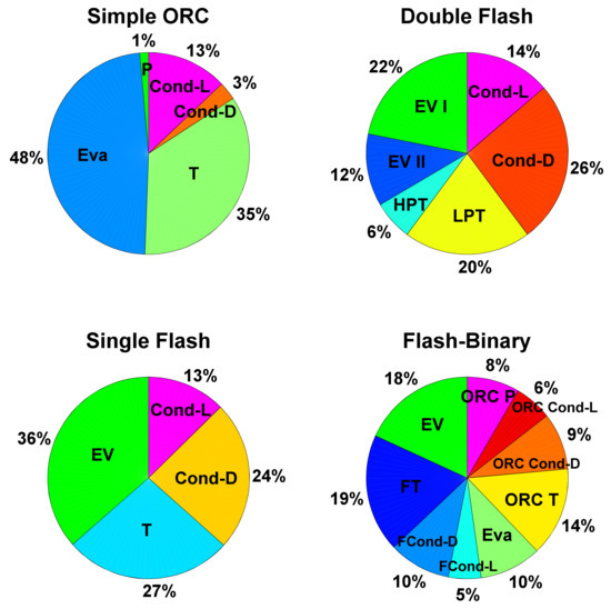 The component in this equation is a fictitious cost-rate-associated dissipative device. For the condenser as dissipative equipment, derived could be distributed amongst all other components, by using the entropy increment in each device as a weighting factor [33]. This approach is applied based on the dissipative element of all configurations.