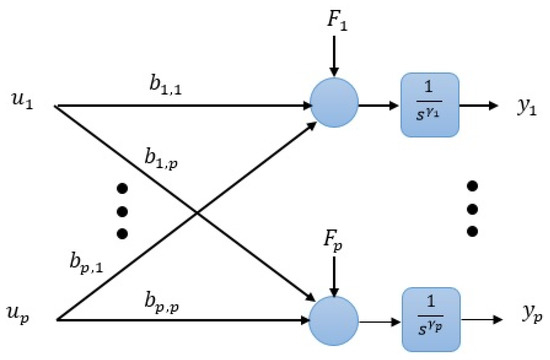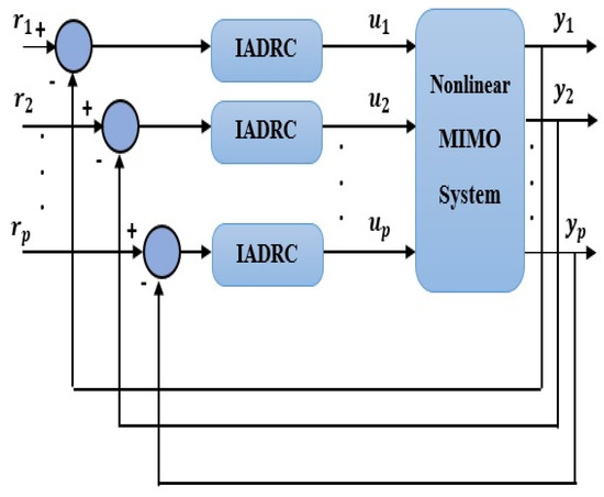 The system of (6) and the considered generalized disturbance of (5) is illustrated in Figure 3. The IADRC-based decentralized scheme for controlling the nonlinear MIMO system (6) is shown in Figure 4.