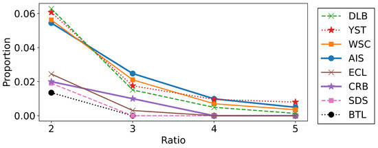for all and n as . In addition, we consider another sequence of the mixture model with different scales on the mixture proportions of the components i and j, i.e., holds for some . We define as the criterion value based on . Then, we say that the criterion satisfies the condition SI (Scale invariance) if for any a, the following holds: