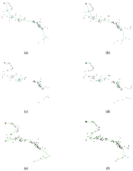 - Stanford, D.C.; Raftery, A.E. Finding curvilinear features in spatial point patterns: Principal curve clustering with noise. IEEE Trans. Pattern Anal. Mach. Intell. 2000, 22, 601–609. [Google Scholar] [CrossRef]