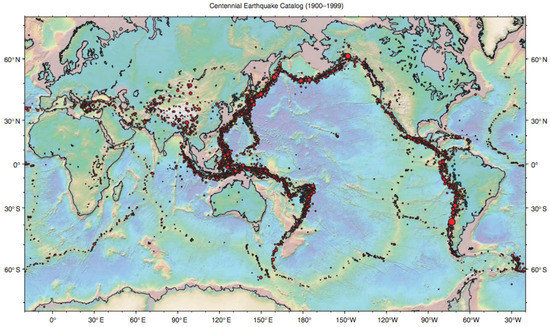 - Engdahl, E.R.; Villaseñor, A. 41 Global seismicity: 1900–1999. Int. Geophys. 2002, 81, 665–690. [Google Scholar]