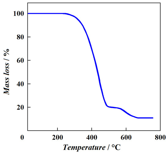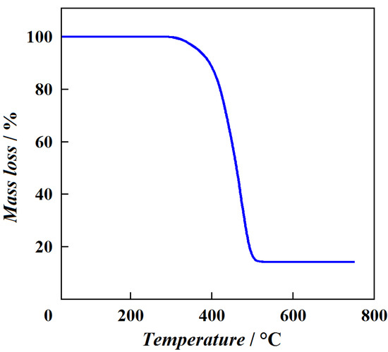 A differential scanning calorimeter DSC 204 F1 Phoenix (NETZSCH) was used to determine the heat capacity of hybrid dendrimer G1{Si}13[Ar]32 in the temperature range T = 350–600 K. The calorimeter design and the experimental procedure were described in detail elsewhere [48]. The DSC 204 F1 Phoenix calorimeter was calibrated using the high-purity (>99.99%) reference samples, namely, indium (In), tin (Sn), bismuth (Bi), mercury (Hg), biphenyl ((C6H5)2), and cyclohexane (C6H12), recommended by the IUPAC Technical Report [49]. The calibration experiments were performed at a heating rate of 5 K·min−1 in an argon atmosphere with a gas flow of 25 mL·min−1. The heat capacity of the studied hybrid dendrimer was calculated using the ratio approach with synthetic sapphire (α-Al2O3) as a reference [50]. The dendrimer mass loaded into the DSC crucible was 12.53 mg. The DSC measurements were carried out in the interval of T = 350–600 K at a heating rate of 5 K·min−1 under an argon purge (25 mL·min−1). The NETZSCH Proteus software was used to analyze the obtained DSC results. As a result, the standard uncertainty for the temperature u(T) = 0.2 K and the relative expanded uncertainty for the heat capacity Ur(Cp) = 0.02 were determined in the range of T = 350–600 K.