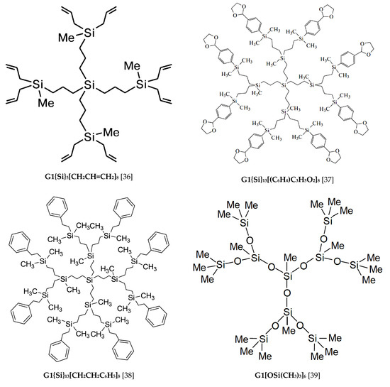 - Frey, H.; Schlenk, C. Silicon-based dendrimers. Top. Curr. Chem. 2000, 210, 69–129. [Google Scholar] [CrossRef]