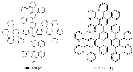 - Shifrina, Z.B.; Rajadurai, M.S.; Firsova, N.V.; Bronstein, L.M.; Huang, X.; Rusanov, A.L.; Muellen, K. Poly(phenylene-pyridyl) dendrimers: Synthesis and templating of metal nanoparticles. Macromolecules 2005, 38, 9920–9932. [Google Scholar] [CrossRef]