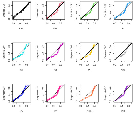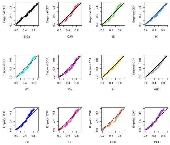 Substituting into (10), the median, , of the EIGo distribution can conveniently be derived. Similarly, substituting and into (10), the first and the third quartiles of the EIGo distribution can be easily obtained.