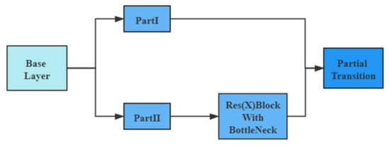 The feature mapping of the base layer is first divided into two parts and then merged across the stage hierarchy. The Res(X) block is made by stacking one downsampling and multiple residual structures.