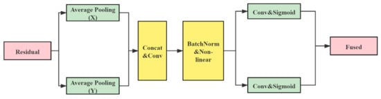 where denotes the input feature map, and , denotes the attention weights of the two spatial directions.