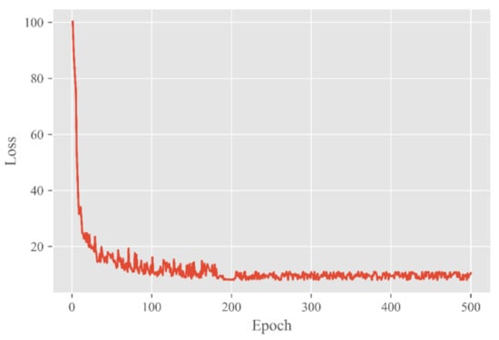 It can be seen from the figure that the loss values kept decreasing as a general trend until convergence. When the number of epochs was 200, the loss curve had no apparent oscillation, and the loss value was stable at about 10.
