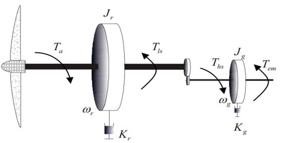 From the conversion system drive train scheme shown in Figure 6, the rotor speed is driven by the rotor torque and the low-speed torque . The generator speed is driven by the high-speed torque and the electromagnetic torque. The generator can get high speed from the rotor through the gearbox, their dynamics can be defined as:
