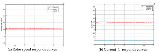 To demonstrate the efficiency of the proposed DOBUC method, simulation experiments of controlling the PMSM system under DOBUC and NDOBC are carried out in this chapter. The parameters of the PMSM are the same as [30]: , , wb, H, N·m·s.rad, Kg·, reference rate speed rpm. The control parameters in (41) are: