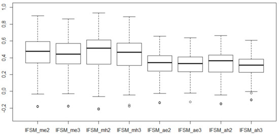 Descriptive statistics and box plots for the values of IFSM coefficients are presented in