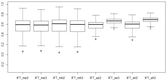 Descriptive statistics and box plots for the values of IFT coefficients are presented in