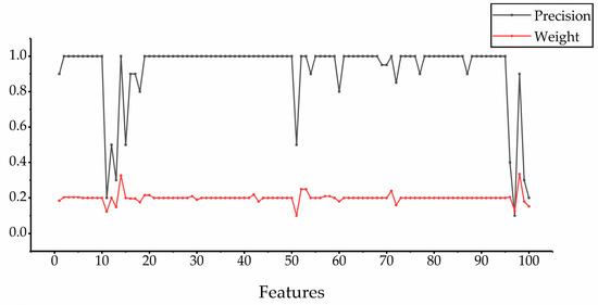 In this paper, we use the trust obtained based on entropy and relevant feedback to select these functions. Suppose there are extracted features, denoted as , is the image to be retrieved, p is the image in the database. Firstly, we calculate the retrieval accuracy of a single feature based on users’ feedback on the retrieval results. Then, the retrieval accuracy is regarded as the trust of a single feature, and the trust is used to select features.