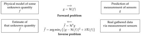 Inverse problems arise in almost any scientific and engineering application. In fact, they arise whenever we want to infer a quantity that is not directly measured. Noting the unknown quantity f and the measurement data g, we may have a mathematical relation between them: where f can be a 1D function (signal), a 2D function (image), a 3D function, or more (e.g., video, hyperspectral images, etc.). is a mathematical model, called a forward operator, and g can also be a 1D, 2D, 3D, or more function. In practice, we may only have discrete values of it available, and, for this reason, the inverse problem that is inferring f from this limited data is an ill-posed problem. When discretized, we may write the relations between them as where g contains all the data, f contains all the discretized representations of the unknown quantity, and H is a multidimensional operator connecting them. Finally, represents all the errors of discretization and measurement uncertainties.