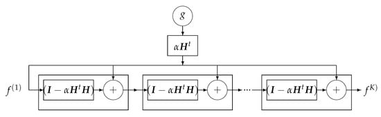 Using the iterative gradient-based algorithm with a fixed number of iterations for computing a GI or a regularized one as explained in previous section can be used to propose a DL structure with K layers, K being the number of iterations before stopping. Figure 24 shows this structure for a quadratic regularization, which results to a linear NN and Figure 25 for the case of regularization.