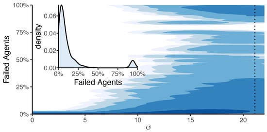- As our model simulations illustrate, the failure of some agents not necessarily worsens the situation but sometimes leads to a better redistribution of tasks, i.e.,to an improved system state. This is not reflected in most redistribution models, with the fibre bundle model [25,26] as a paragon, because only failing agents redistribute their load, negatively impacting the stability of the system.