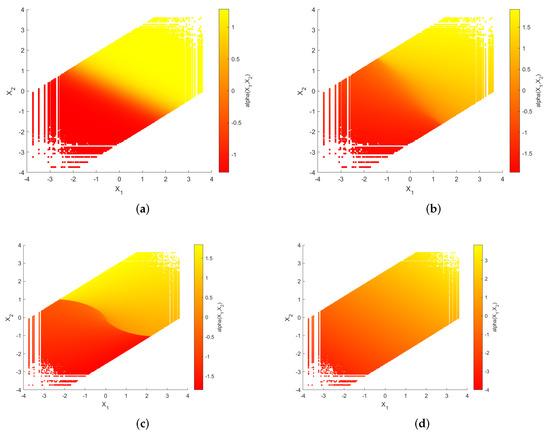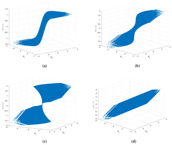 Although the structures of the two nonparametric mappings are not exactly the same, we can still summarize some common characteristics. There exist two flat layers in both nonparametric mappings. Different degrees of deformation can be observed in the middle part of two nonparametric mappings surfaces. While fixing , the curve of with respect to is shown as Figure 3c and Figure 4c. The shapes of the two nonparametric mappings obtained above inspire us to propose several different parametric encoding schemes.