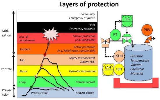 - Dowell, A.M. Layer of Protection Analysis and Inherently Safer Processes. Process. Saf. Prog. 1999, 18, 214–220. [Google Scholar] [CrossRef]