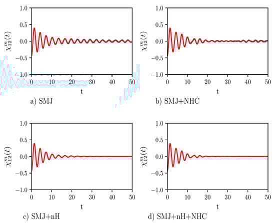 Equation (51) provides the equation of motion for the density matrix of the nHQSMJ model at constant temperature. This equation can be implemented through a variety of algorithms [,,,].