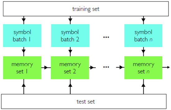 - Consider a batch, an ordered collection of B symbols , , taken from the training set. Create a new memory that is equal to the first symbol from this batch and is of the same type:Record the fact that symbol 1 is now stored in memory 1. Create one memory for each additional type of symbol in the batch (with each memory consisting of one symbol), giving up to ten initial memories. Record the memory in which each symbol is stored (here and subsequently).