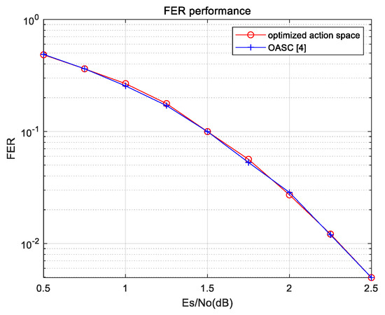 4]. The results show that the FER performance of the action space is the same as that of the OASC decoding algorithm. This shows that the size of the action space is reduced without loss of performance. Therefore, the proposed action space is complete.