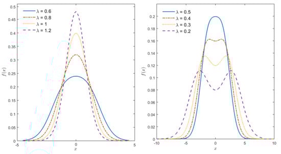 when the logistic-normal (LN, henceforth in short) in (10) reduces to the normal distribution. Thus LN distribution is a generalization of the normal distribution. Furthermore, the LN distribution is a member of the T-normal family proposed by [24]. In Figure 1, graphs of standard LN distribution (where ) for various values of are provided. Figure 1 shows that the logistic-normal PDF has several advantages, the parameter introduces the flexibility on kurtosis (see also Figure 2) and controls whether the distribution is unimodal or bimodal. Moreover, it appears that the bi-modality occurs when is approximately less than