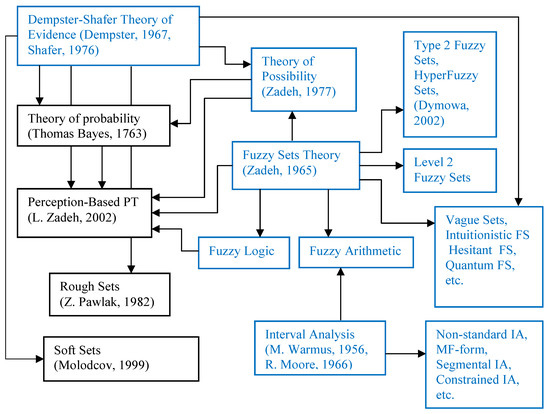 Based on our knowledge and therefore in a somewhat debatable way, the genesis and actual structure of uncertainty theories with their links may be (not completely) presented as in Figure 1.