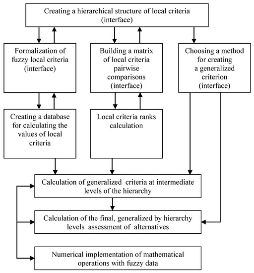 Therefore, here we will present only our approach to the solution of the MCDM problems, which provided valuable results in solving the different real-world problems we met in our practice. To make reading the paper easier and for a better understanding of our approach, its structure reflecting the enlarged implementation is presented in Figure 2. The components of this structure are described in detail in the corresponding subsections below.