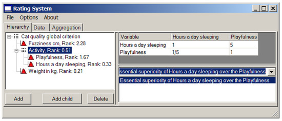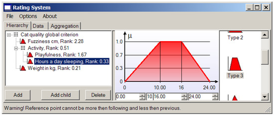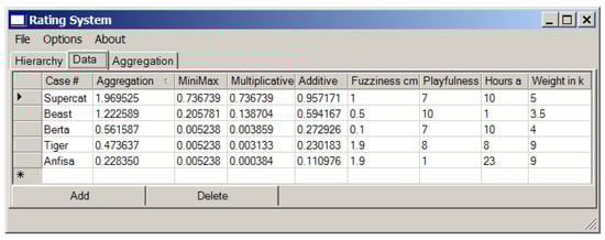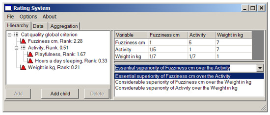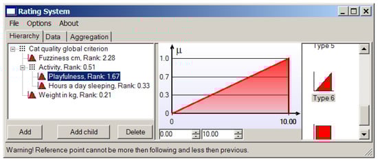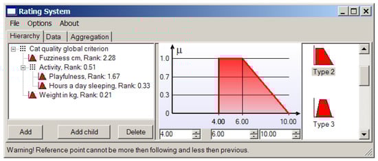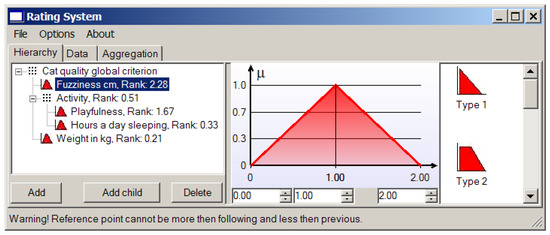 The rest of the paper is organized as follows. In Section 2, the selected set of mathematical tools that have proven their effectiveness for solving MCDM problems is presented with the remarks concerned with their usage. Section 3 illustrates step by step the software we developed using the screenshots of the solution of a hierarchical, fuzzy MCDM “cat buying” problem. Section 4 concludes the paper with some remarks.