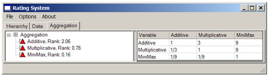 There are many different approaches proposed in the literature to obtain these real-valued weights. In [55], their approximate classification was presented as follows: the eigenvector method, the least squares method (LSM), the logarithmic least squares method (LLSM), the geometric row means method (GRM), the weighted least squares method (WLSM) and a category of methods that involve only arithmetic operations: the row means of normalized columns approach [15], the normalized row sum and the inverted column sum methods [56].