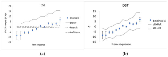 | Number Sequence | Empirical Memory Task Difficulty, δ | U(δ) k = 2 | Entropy Equation (6) | Reversals | Average Distance |