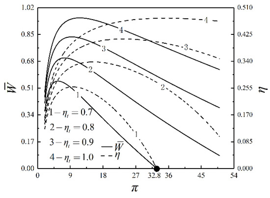 where the working fluid’s flow velocity must be subsonic, namely, Because the working fluid has an initial speed, and when . Because of , . When , the cycle model in this paper can be simplified to a simple Brayton cycle.