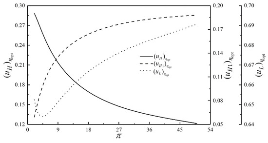 To further explain the difference between the models in this paper and Ref. [101], the comparison of under the variable and constant is shown in Figure 7. As shown in Figure 7, increases and then decreases as increases in both cases; that is, the qualitative law is the same. However, there is an apparent quantitative difference between the two points. Under the constant , corresponding to the constant is always greater than conforming to the variable . Similarly, there are quantitative differences in , and under the variable and constant . The model whose is variable is more realistic.