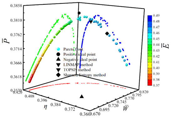 In the process of the thermodynamic system optimization, single-objective optimization often led to unacceptable objectives for other objectives when there were conflicts among the considered goals. Multi-objective optimization would consider the trade-offs among the goals, and the optimized results were more reasonable [99,100,102,105,106,107,108,109,110,111,112,113,114,115,116,117,118,119,120,121,122,123,124,125].