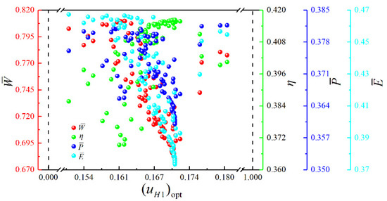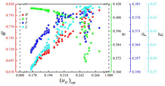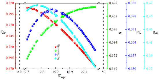 Equations (10)–(12) and (16)–(29) are combined, and the four dimensionless performance indicators of the cycle are obtained as follows: